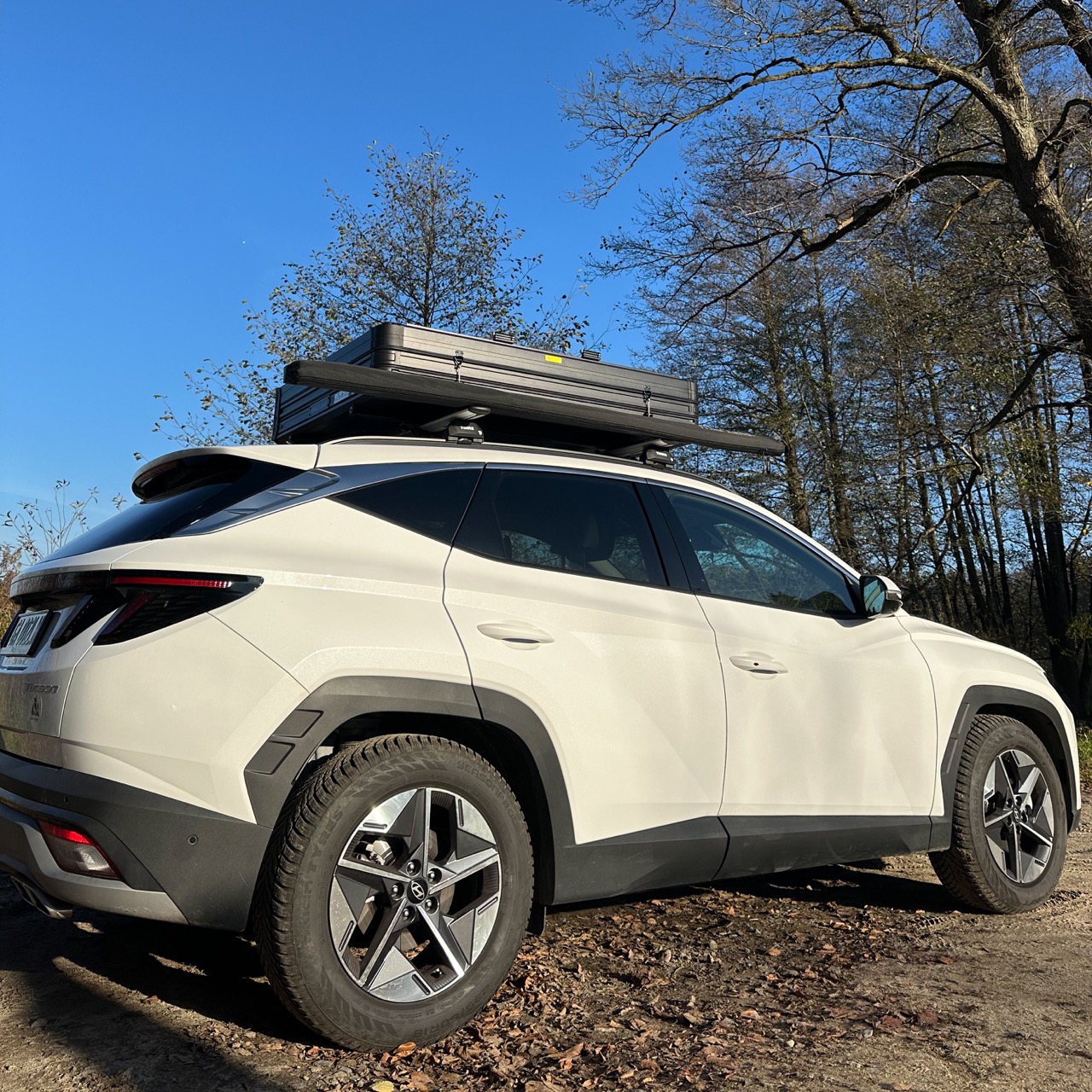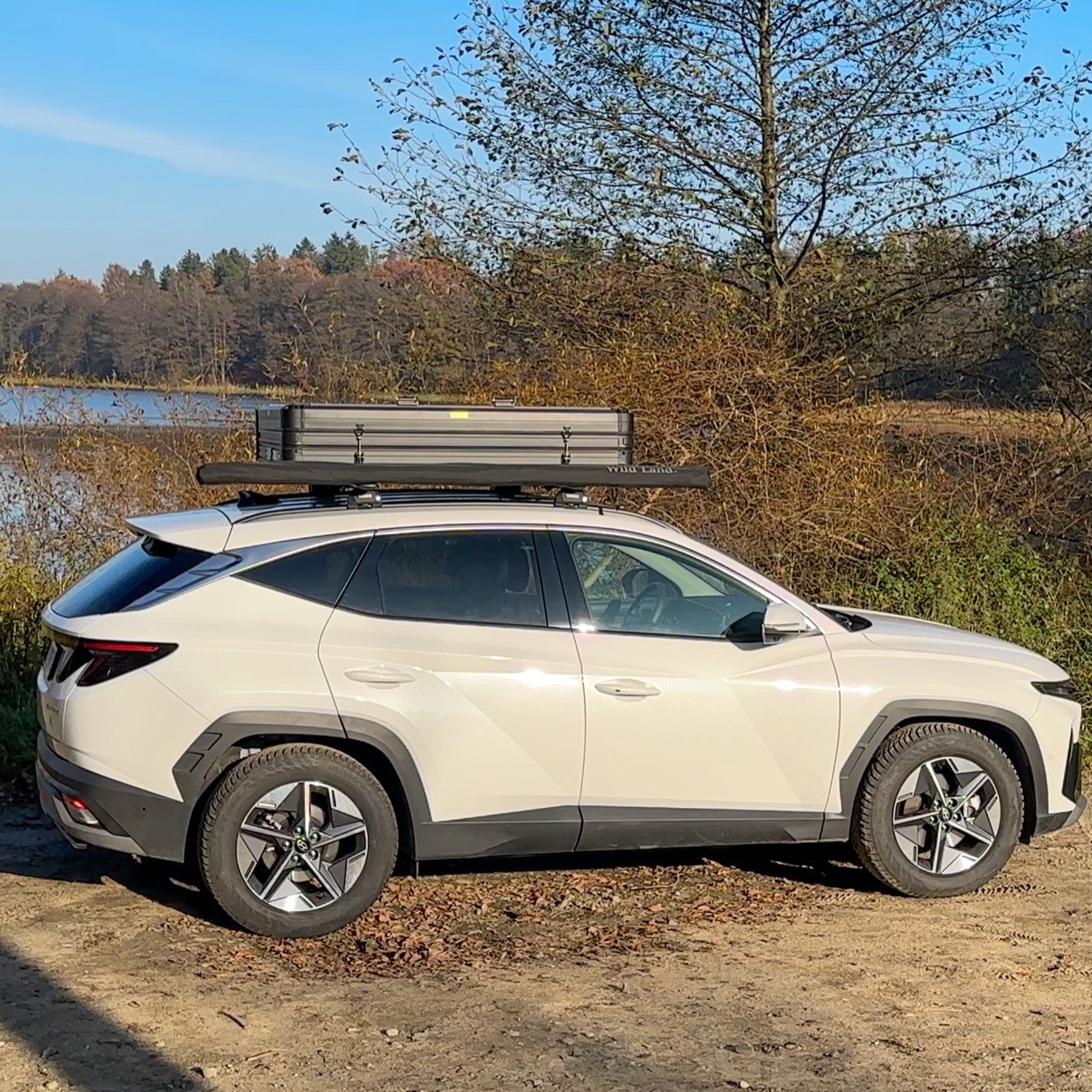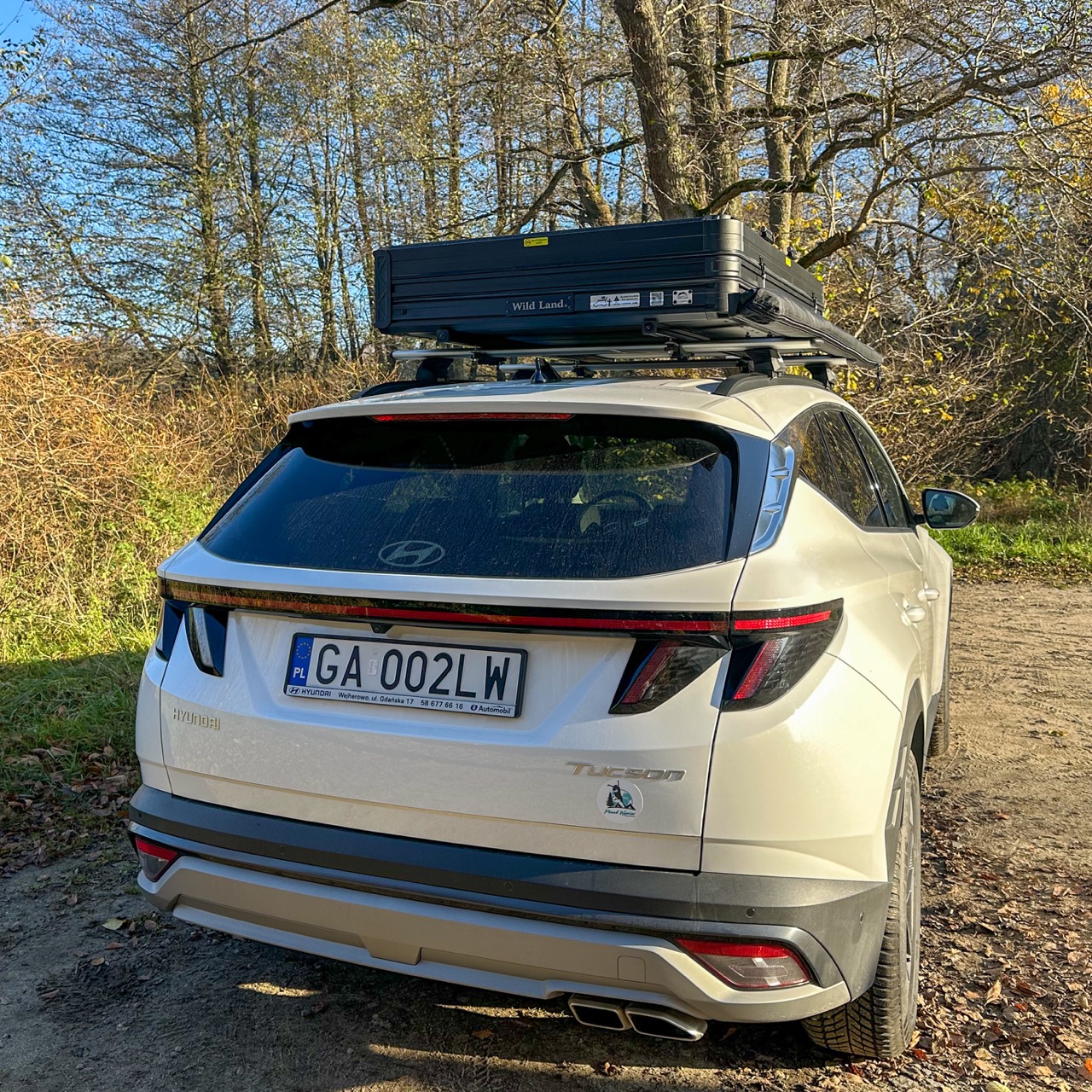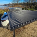 The Lite side awning is exceptionally light and compact, designed for use not only with off-road vehicles, but also with passenger cars, including smaller ones, due to its weight and mounting system. The awning opens to the side, is 200 cm wide and 225 cm long, and does not overlap the rear of the car, allowing you to easily open the liftgate.