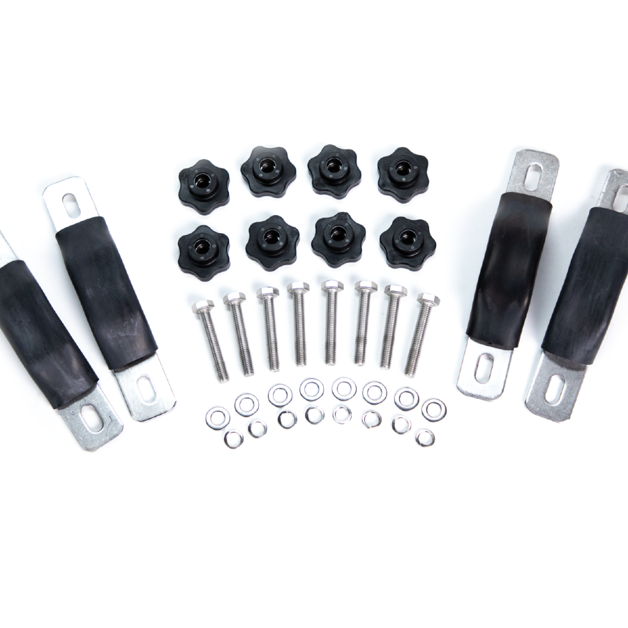Zestaw obejm wraz ze śrubami i nakrętkami do każdego z modeli namiotów dachowych Wild Land.