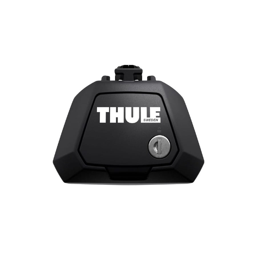 Łatwy montaż stóp. Dołączony do zestawu klucz z ogranicznikiem siły mocowania pozwala na pewne i bezpieczne zamocowanie bagażnika do pojazdu. Gumowa wyściółka chroni powierzchnię podwyższonych relingów i zapewnia dobre mocowanie. Zamki Thule One-Key w komplecie.