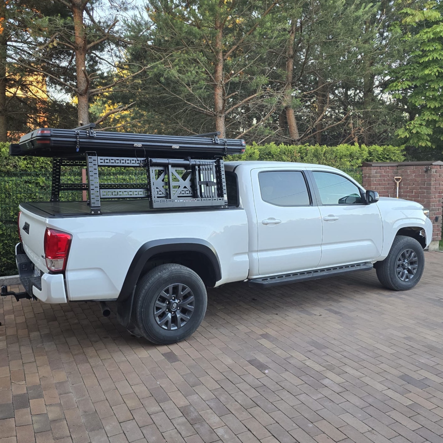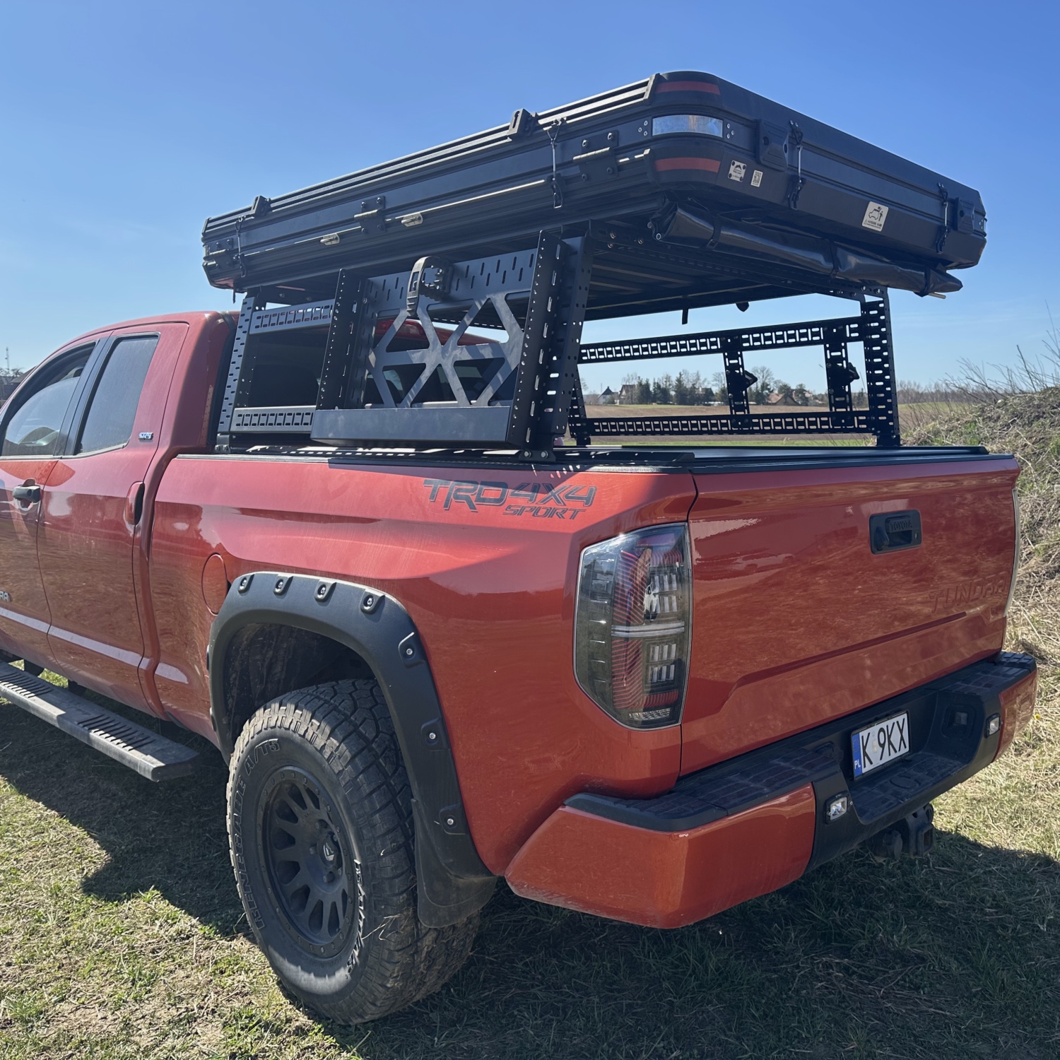 Mocowanie na drabinkę teleskopową namiotu dachowego. Pasuje zarówno pod montaż do zabudowy typu bed rack wysokiej, jak i niskiej.